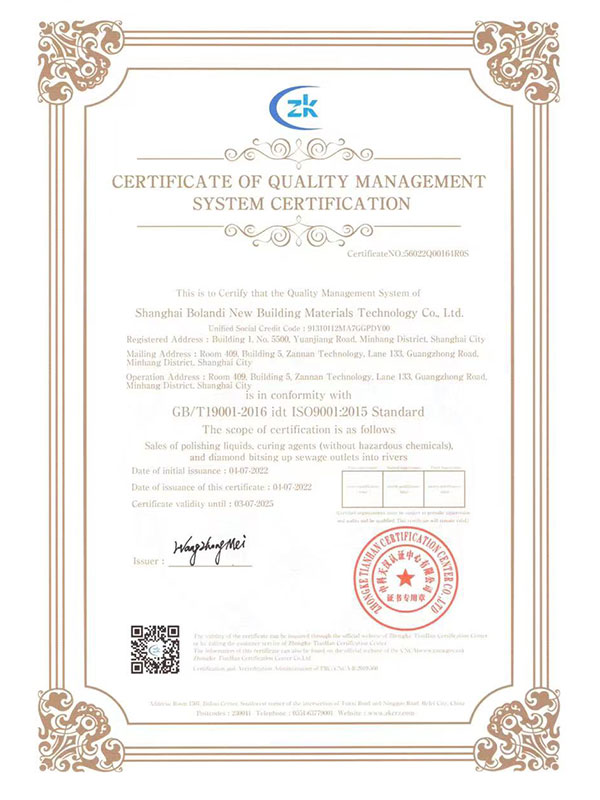 質量管理體系認證證書